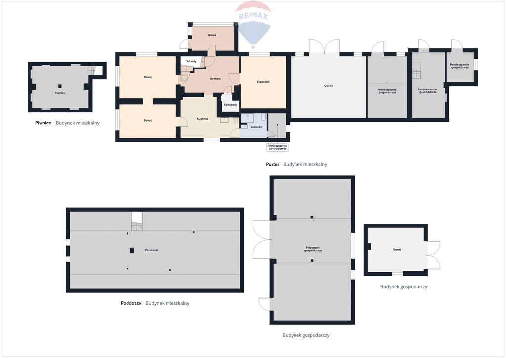 znajduje się również kotłownia oraz pomieszczenie gospodarcze.